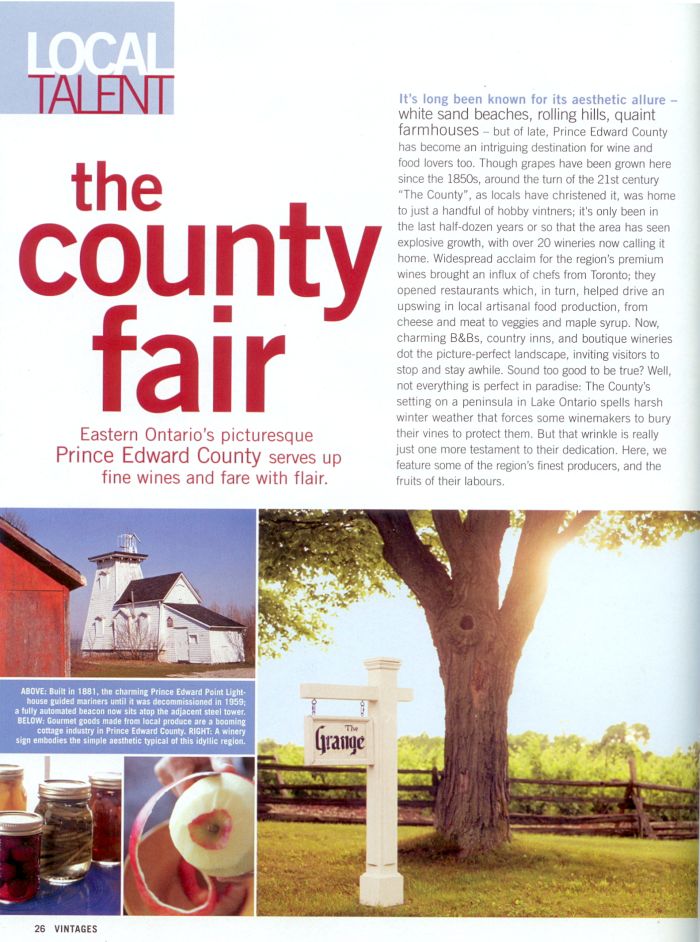Feature Article Prince Edward County: des vins et bien davantage... |
